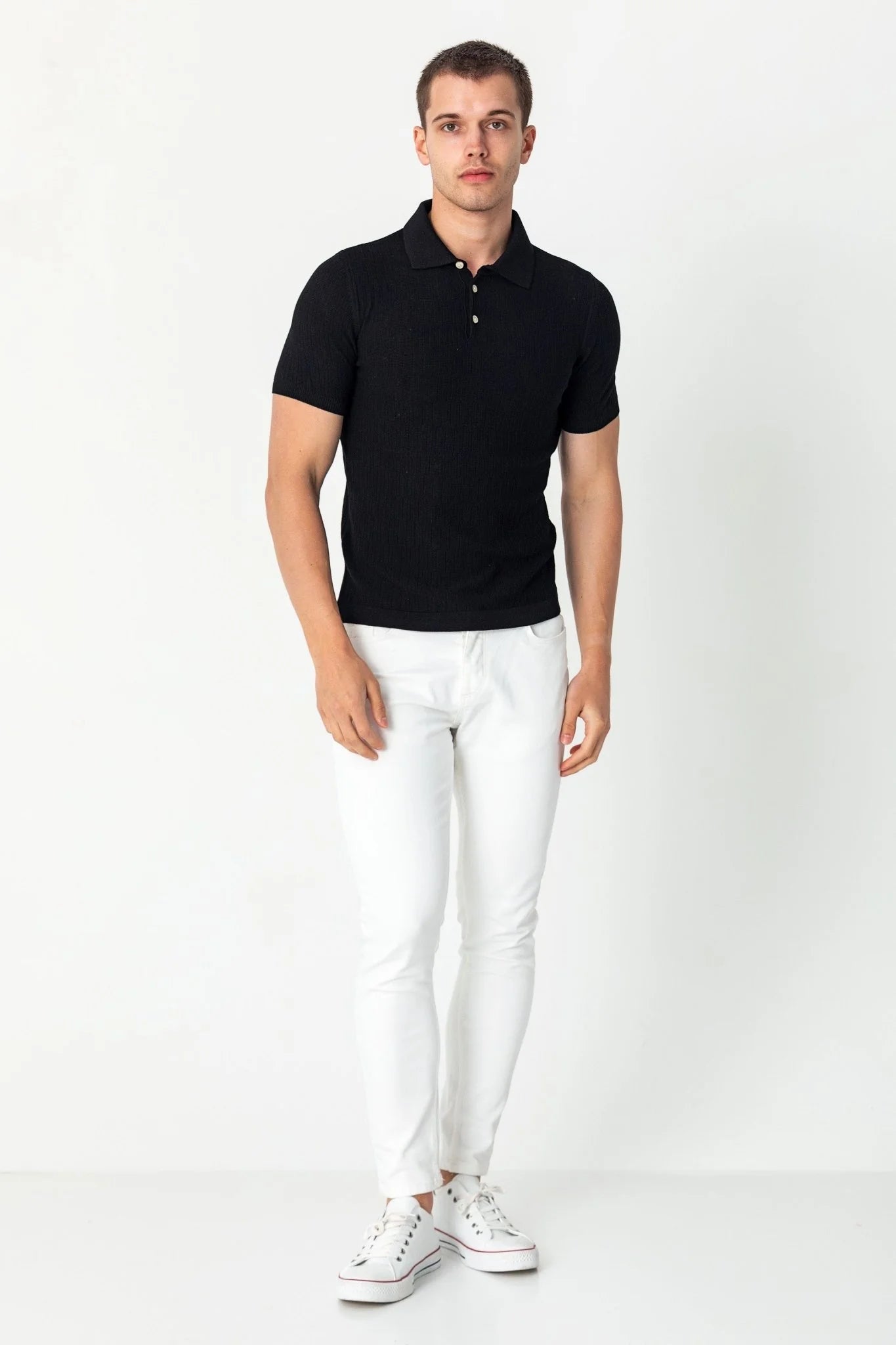 Short Sleeve Textured Polo Shirt Black